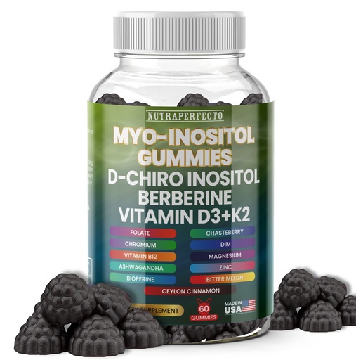 Sugar Free Inositol Gummies, Myo-Inositol & D-Chiro Berberine Vitamin D3 K2 DIM